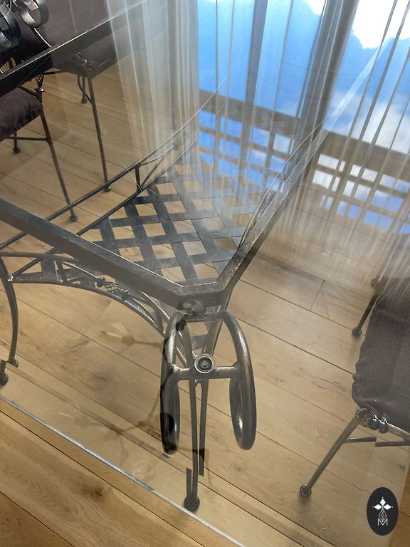 Izgatavots Vjetnamā. Sols ar izvelkamu pagarinājumu. Tējas galdiņš ar krēslu (pieejams arī otrs krēsls).