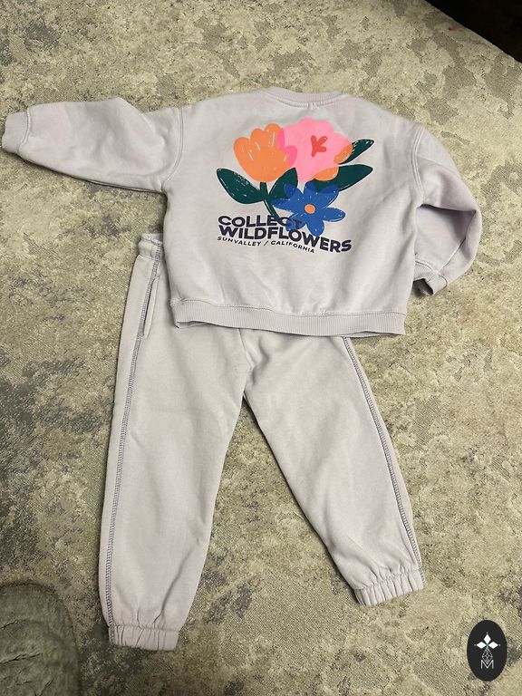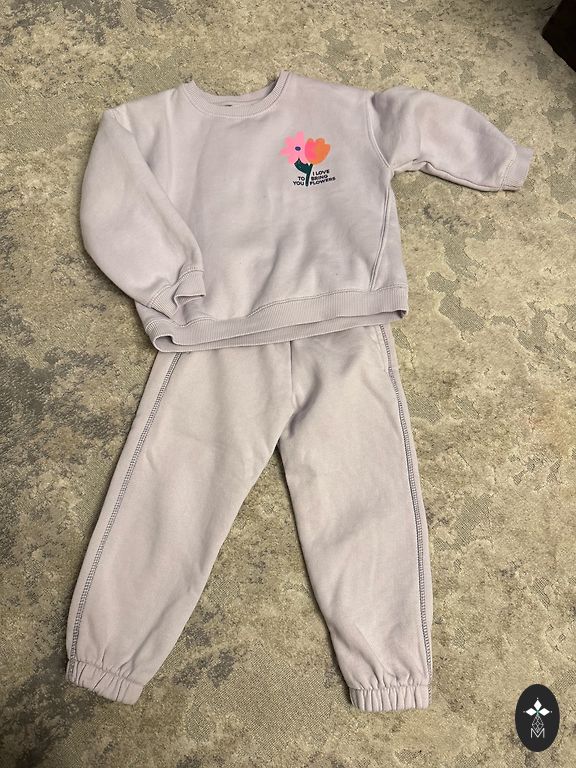 Very warm suit for a girl with a removable hood. Perfect condition, except for a small stain on the elbow (from paint). Sleeve length from underarm is 47cm, leg length from inside is 60cm.