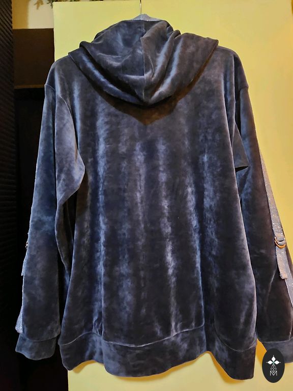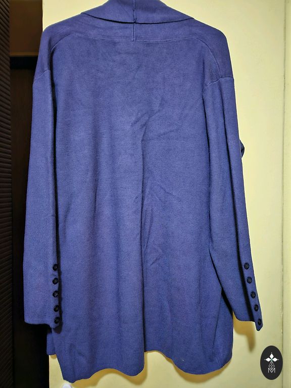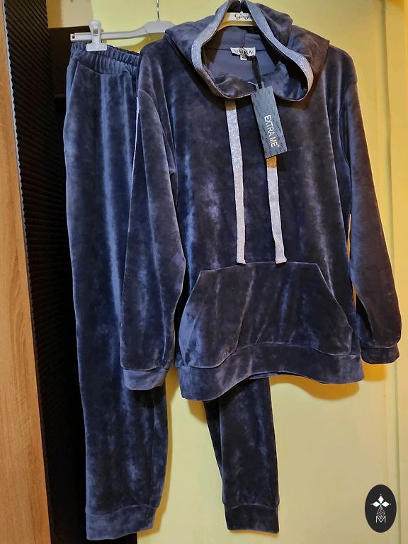 Tumši zili, pāris reizes vilkti svārki, viduklī ir gumija, odere, ļoti viegli, neburzās. Viduklī 37cm×2 ( labi stiepjās), gurnos 57cm×2, garums 80cm. Derēs XL - 2XL izmēram.