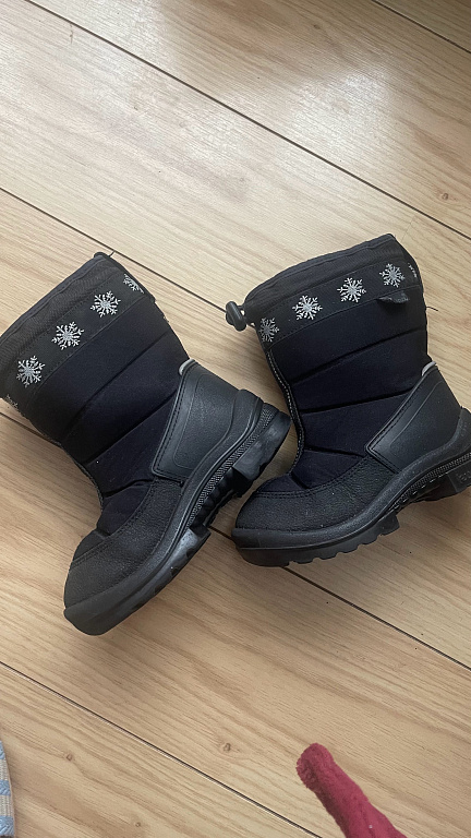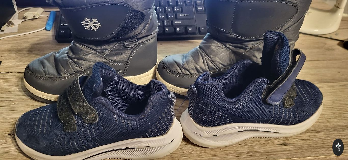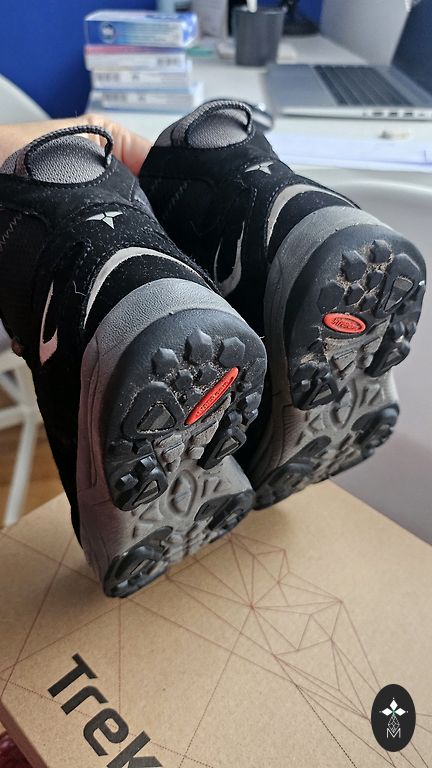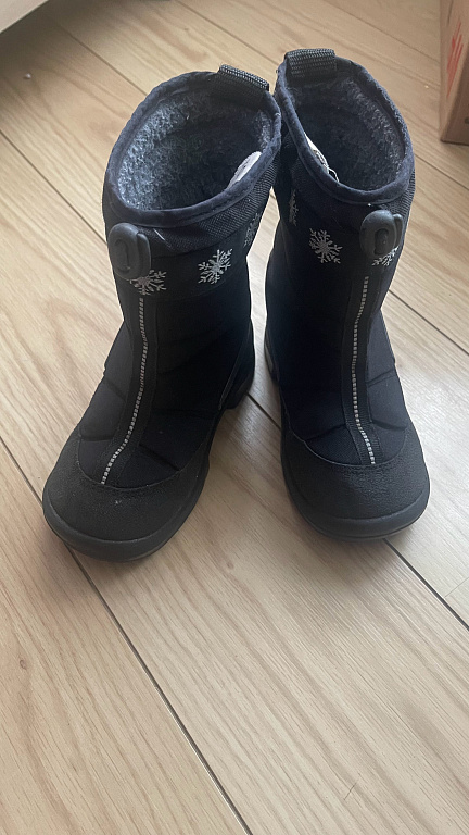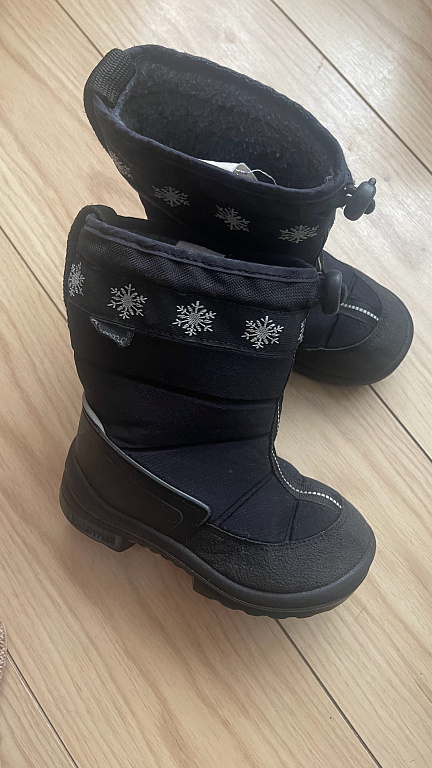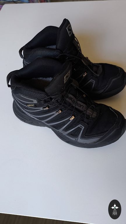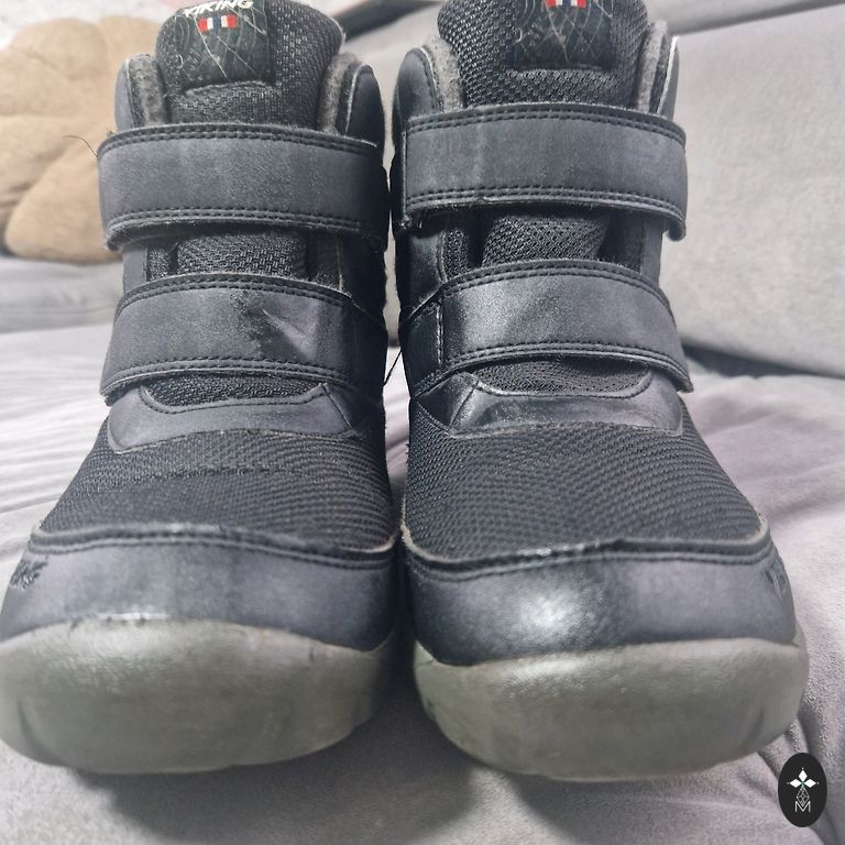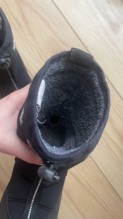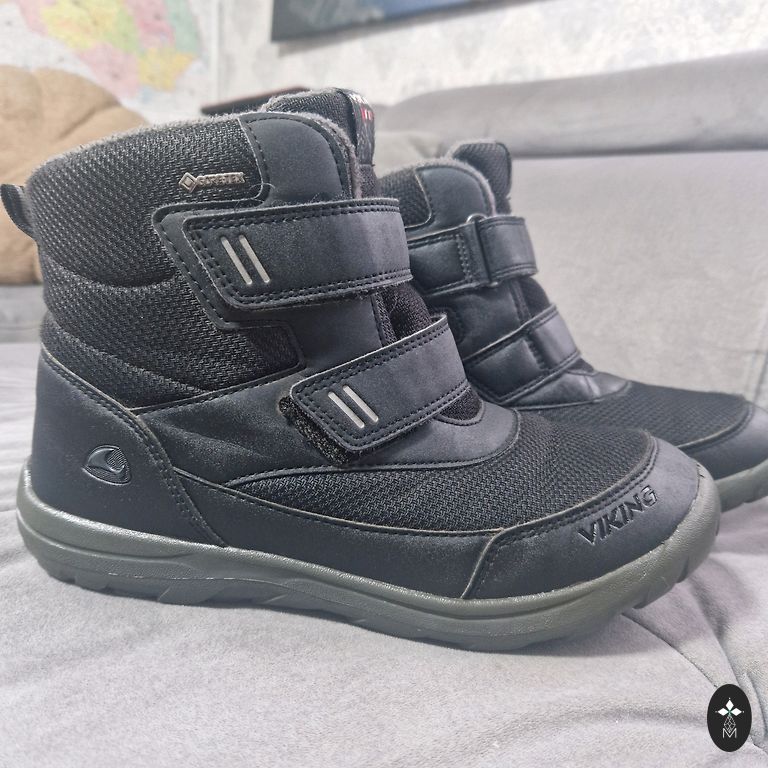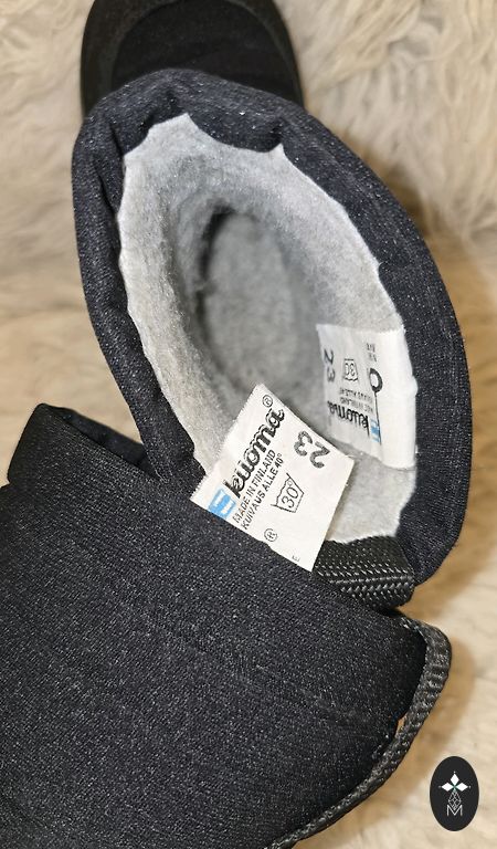 Goretex, moisture-proof. Insulated inside, with a slight fluff (not wool), slightly with bobbles, but not torn anywhere, not even at the heel part. Inner foot measures 20.5cm, quite wide, with regular insoles inside, warm ones come along, so they can be worn in autumn and winter. Clips adhere well, sole without defects, outside a stain from salt (visible in the photo).