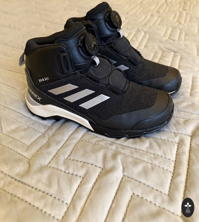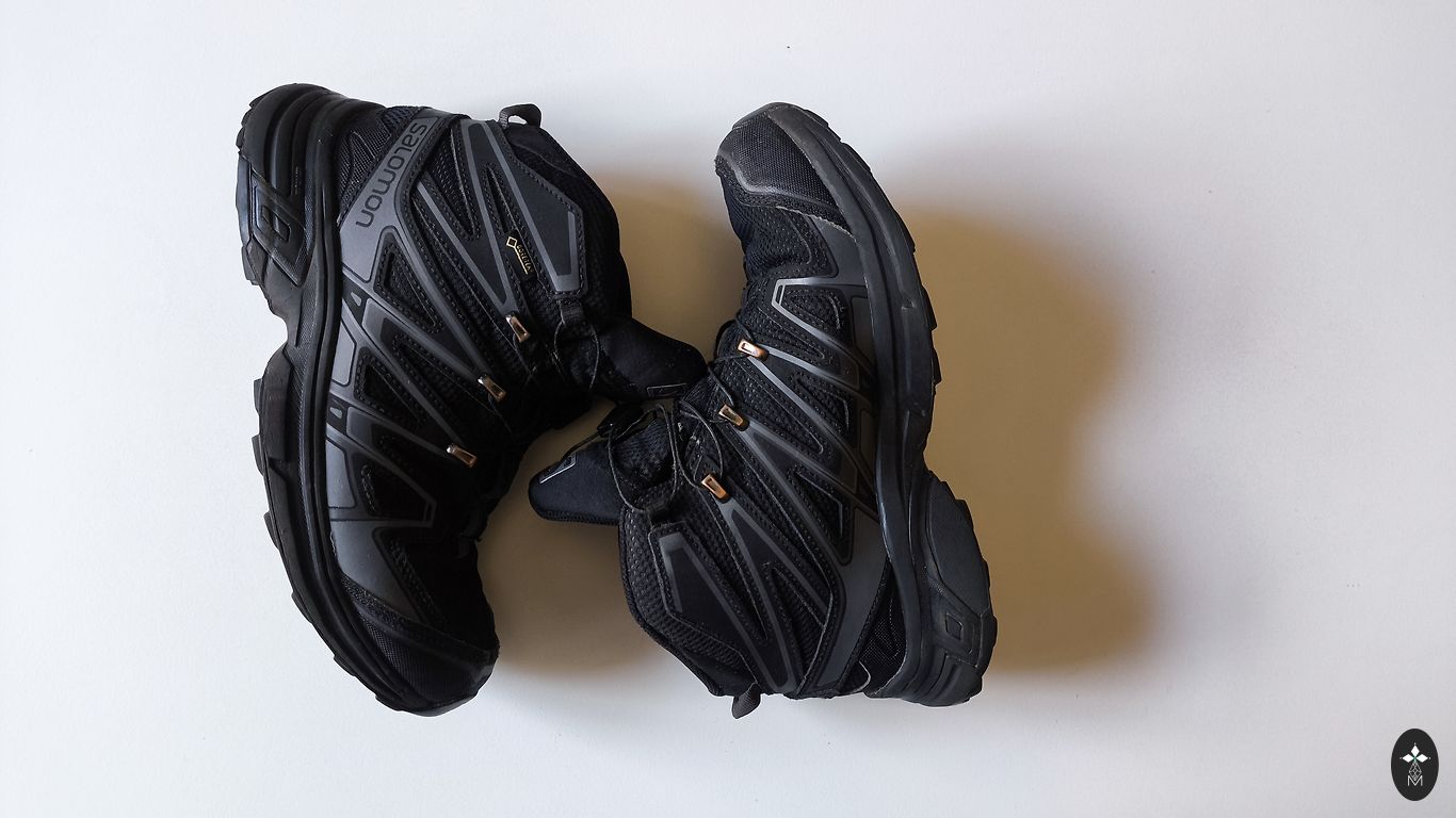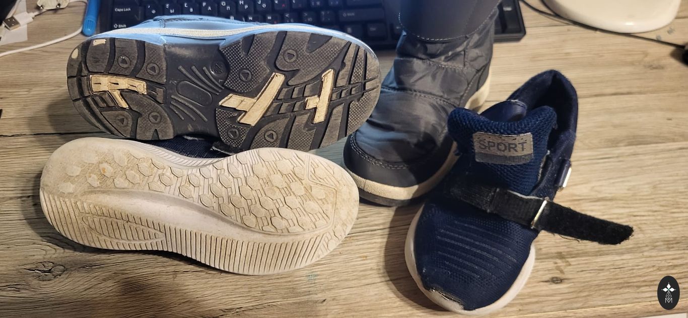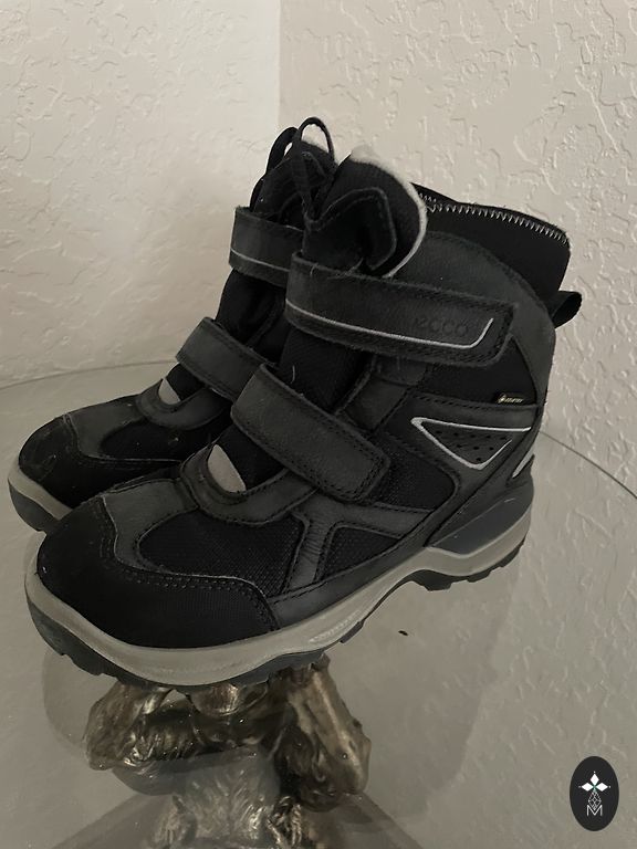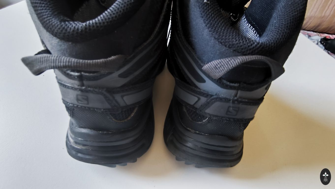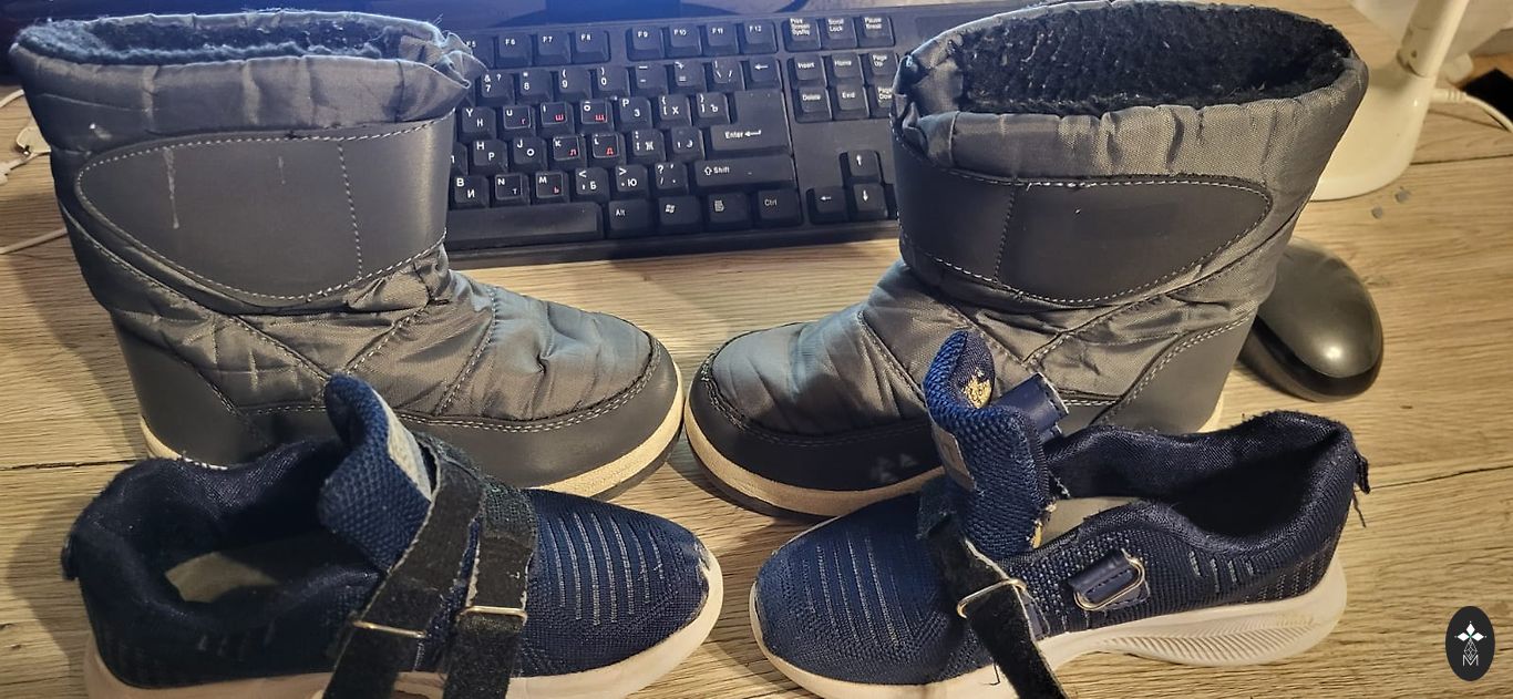 Goretex, moisture-proof. Insulated inside, with a slight fluff (not wool), slightly with bobbles, but not torn anywhere, not even at the heel part. Inner foot measures 20.5cm, quite wide, with regular insoles inside, warm ones come along, so they can be worn in autumn and winter. Clips adhere well, sole without defects, outside a stain from salt (visible in the photo).