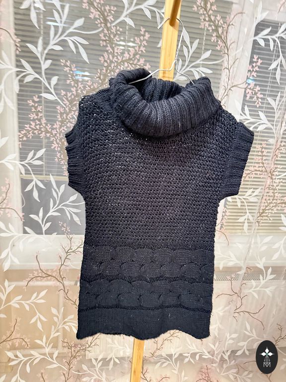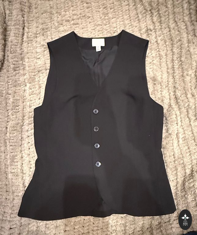 Жилет в очень хорошем состоянии, надет только один раз. Красиво смотрится как застегнутым, так и расстегнутым.