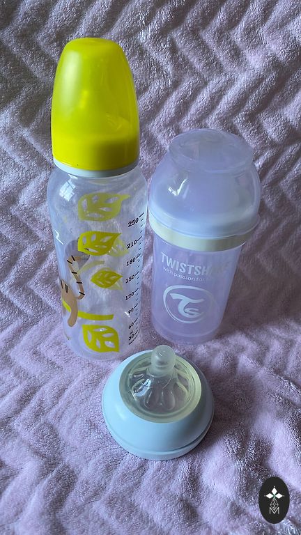 Mazliet padzisusi apdruka, bet var saprast. Klāt došu arī dažas pudelītes, pudeļu uzgaļus un piena maisiņus uzglabāšanai, kā arī knupīšu dažus.