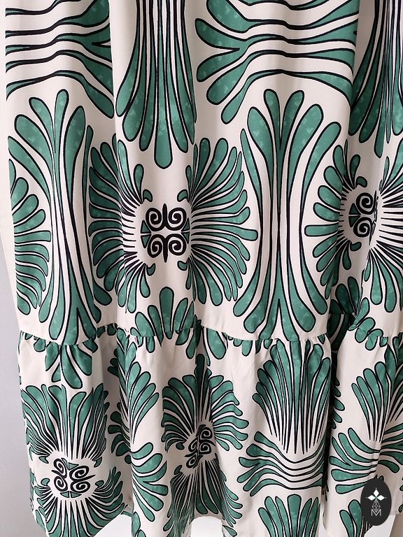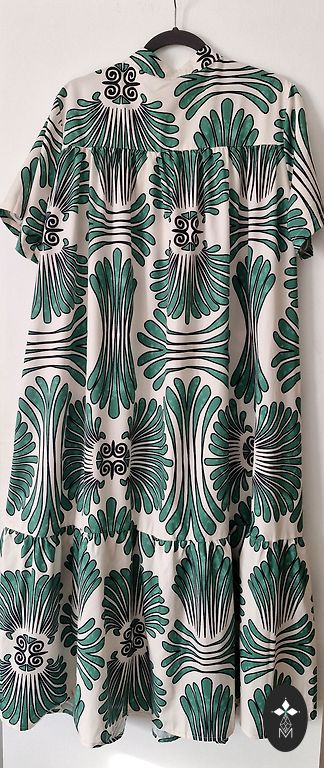 Новое льняное платье, однако модель не подходит. Длина 122 см, от подмышки до подмышки 65 см, от плеча до плеча 48 см. В талии 64 см, внизу 89 см.