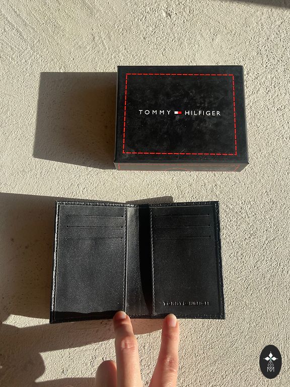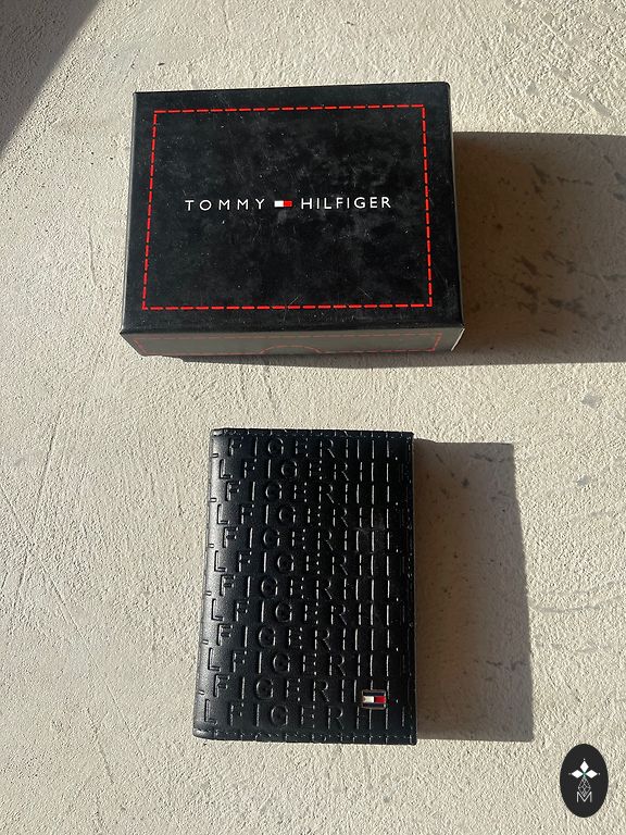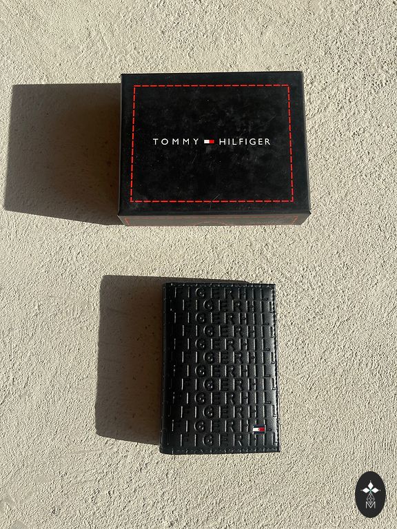 komplektā - Tommy Hilfiger eko ādas naudas maks un eko ādas siksna, divkrāsaina (melna un brūna) 120cm gara, 3,4cm plata, pats var saīsināt. Maks ļoti vienkāršs, faktiski var teikt ka paredzēts jaunietim. Izmērs 11cm x 9,5cm. Kastītē.