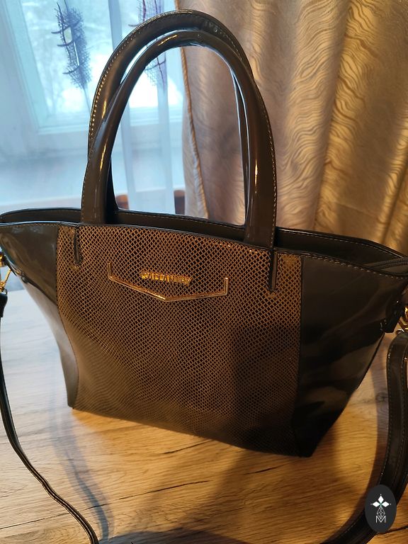 Pārdodu praktiski jaunu firmas Marina Galanti lielas ietilpības somu melnā krāsā.Somai priekšā ir liels nodalījums ar rāvējslēdzēju, aizmugurē mazāks nodalījums.Somas platums ir 54 cm, augstums 30 cm.Somu var nēsāt uz rokas vai pleca, garā pleca siksna nav paredzēta.Sūtu uz pakomātu, klātienē netiekos, pārdoto preci atpakaļ nepieņemu, sūtīšanas izmaksas sedz pircējs, pretenzijas neuzklausu.