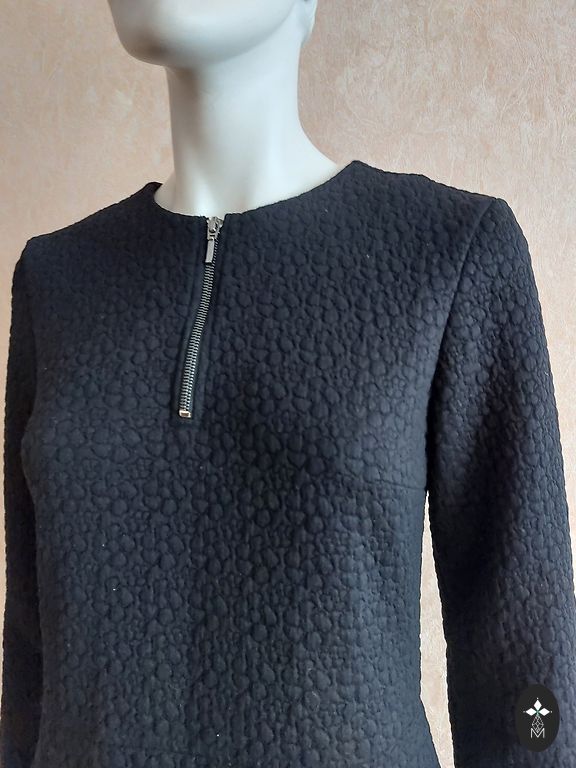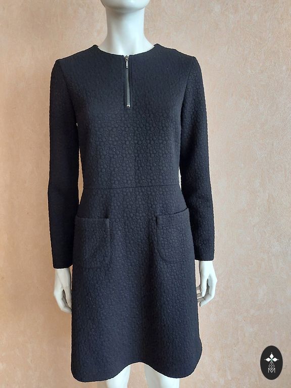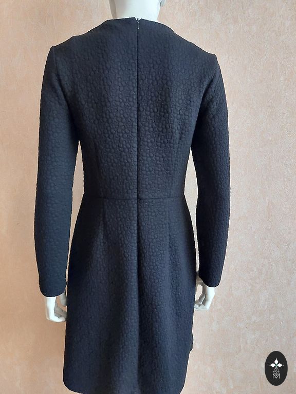Skaista melna midi kleita ar balona tipa piedurknēm. Kleitai ir kabatas.