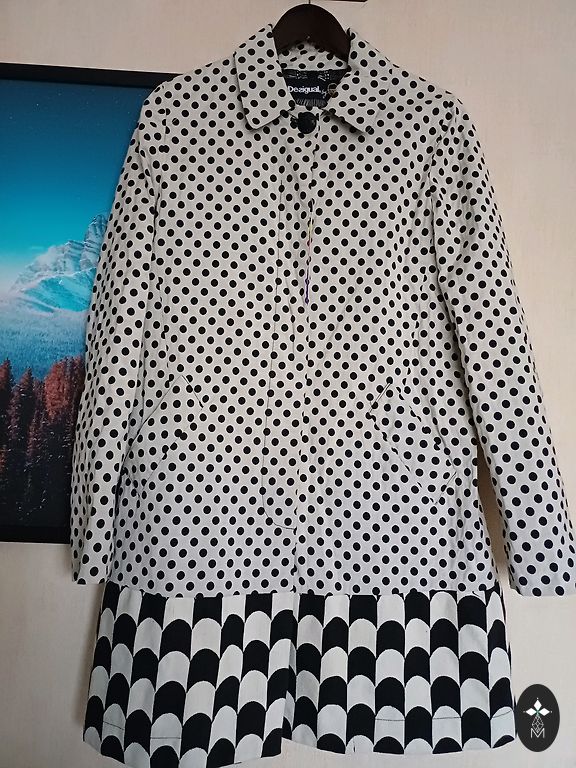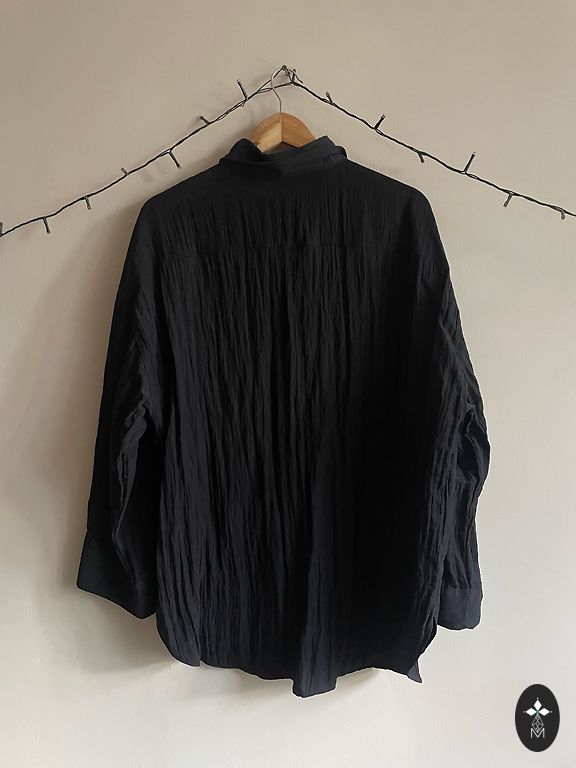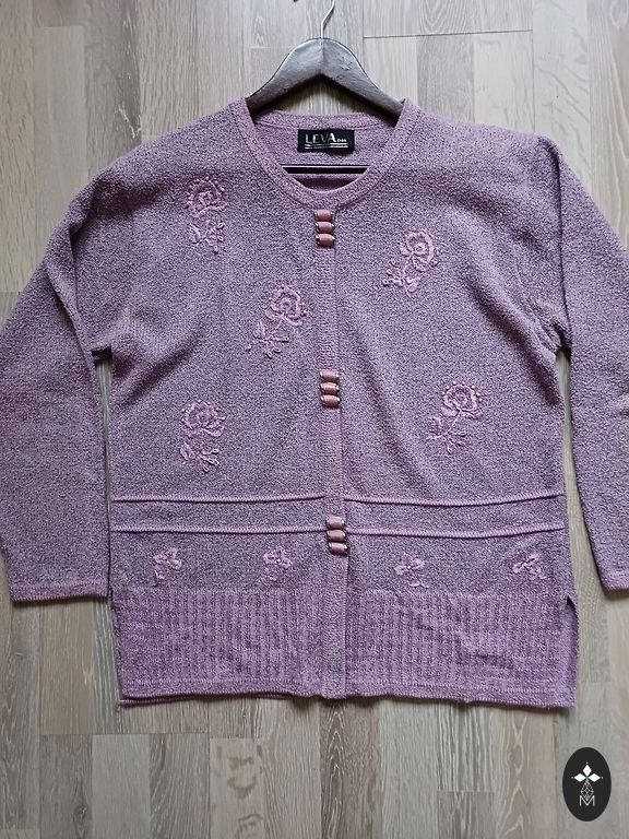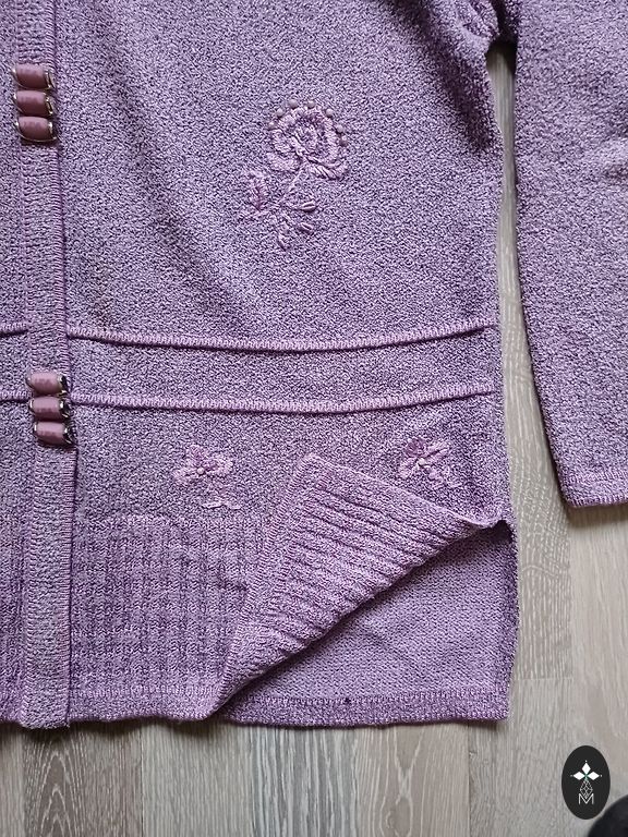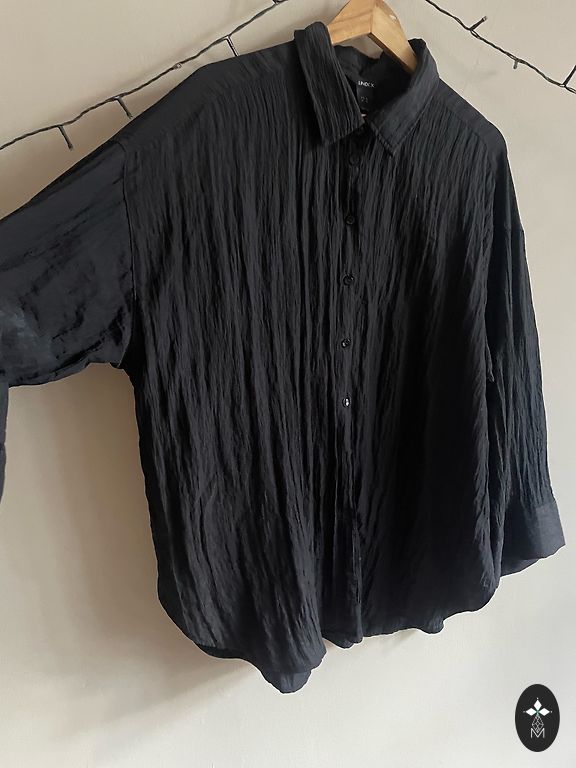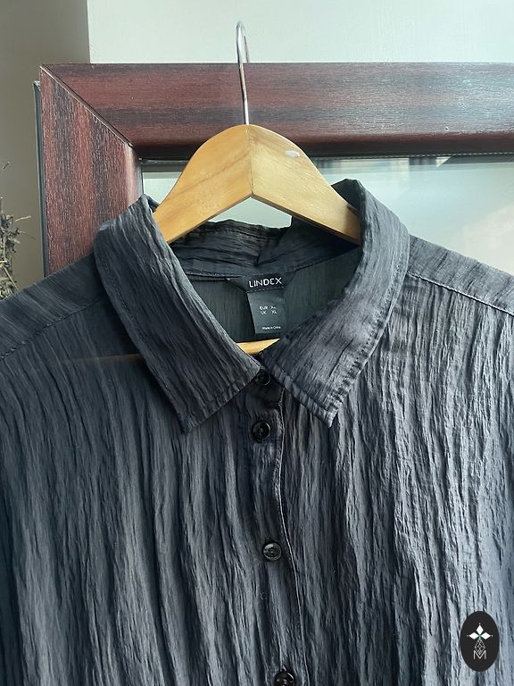 Izklaidējoša blūze BerKertex izmērs M-L. Blūze divi vienā, ar puscaurspīdīgu kardigānu un garām puscaurspīdīgām piedurknēm. Sānos caurspīdīgajam kardigānam ir nelieli griezumi apakšā. Krūšu apkārtmērs 102-104 cm, blūzes garums 68 cm.