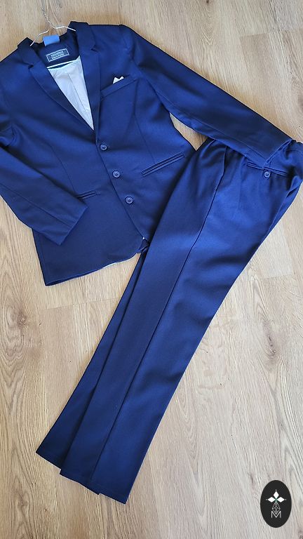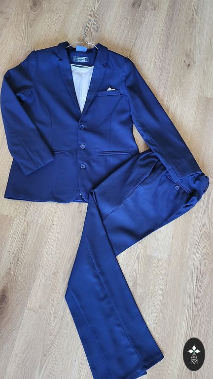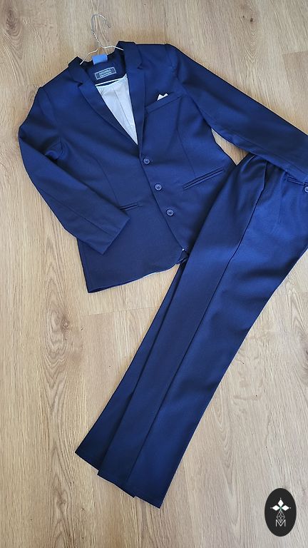 Pasūtīts no internetveukal(zalando) uz ilks uz izlaidumu vienu reizi, jo izaugām bet man ļoti patīk. Biksēm augšdaļā gumija. Bikšu garums 86-87 cm platums augšdaļā 33cm.. Rokas garums bez pleca daļas 53 cm. Žaketei uz birkas.izmērs 146-152 bet biksēm 152.