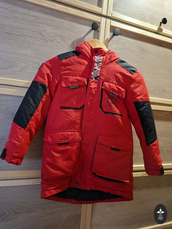Jaciņa ar pildījumu, diezgan silta, uz rudeni. Ar kabatām. Ir defekti, kas redzami bildē: saplēsta kabatā un nieka krāsā uz rāvējslēdzēja.