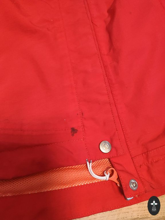 Jacket with padding, quite warm, for autumn. With pockets. There are defects visible in the photo: a tear in the pocket and a small stain on the zipper.