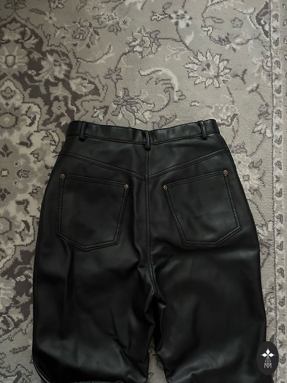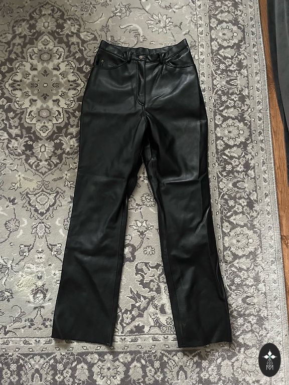 L dydžio kelnės. Aukšta talėja. Tinka rudeniui ir žiemai, nes viduje yra šilta pamušalas. Be raukšlių, prigludusios. Elastinė talėja. Ilgis 100 cm, vidinis kojos ilgis 69 cm. Reikia lyginti. Kaina nurodyta.