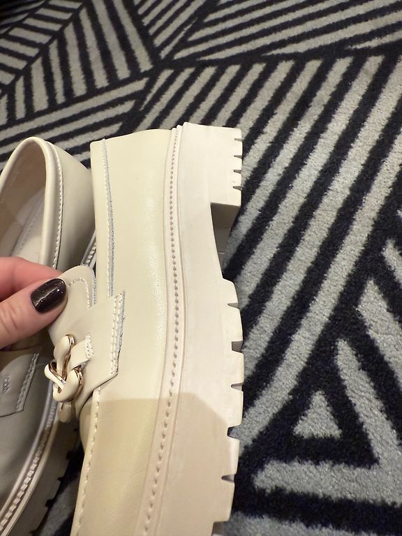 Dr.Martens apavi. Vilkti ļoti maz, jo diemžēl sapratu, ka apavi man ir nedaudz pa ciešu. Norādītais izmērs ir 42, man pašai ir 42/43.Ja ir 41,5 līdz 42, tad apavi derēs ideāli. Kreisajai kurpei purngalā ir neliela, neuzkrītoša švīka, ko domāju, ka var nopucēt tā, lai vispār redz, bet es neslēpju, lai pircēja redz, tāpēc arī cena ļoti adkevāta un daudz mazāka nekā pati pirku. Krāsa ir bēša/maigi rozā.