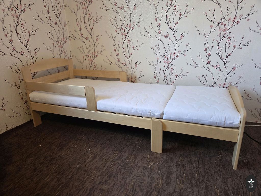 В комплекте: одеяло и подушка, водонепроницаемый чехол на матрас, наволочка, пододеяльник, простыня. (комплект из IKEA).