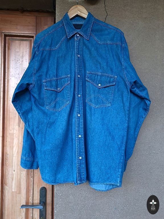 Nudie Jeans Co, denim krekls no bieza un blīva džinsa auduma, Izmērs XL bet labāk derēs uz L.