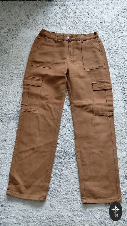 Jauni džinsi,gali nogriezti jo bija pa garu,bikšu garums 1m .Aizmugurē gumija