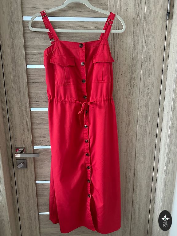 ♦️Graži suknelė, ryškiai raudonos spalvos. Dydis 38EU. Pečių plotis 40cm, 3/4 rankovės, krūtinė 48x2cm, klubai 49x2cm, ilgis 87cm.♦️