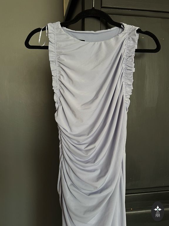 The dress has beautifully draping fabric.