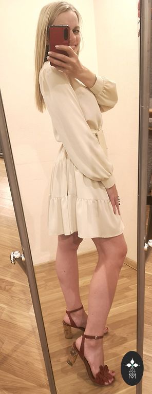Garums - 108cm. Uzliekot jostu, garums saīsinās par ~20cm. Izskatās eleganti.