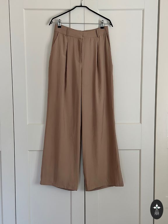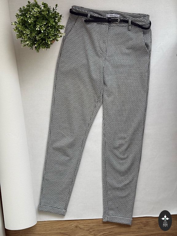 Ērtas bikses ikdienai un darbam ofisā ar elastānu. Baltas ar tumši zilu rūtojumu.
