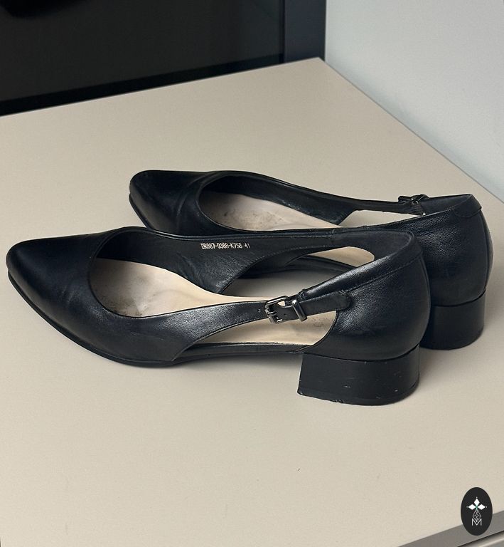 Новые элегантные чёрные кожанные туфли на среднем каблуке Размер 41