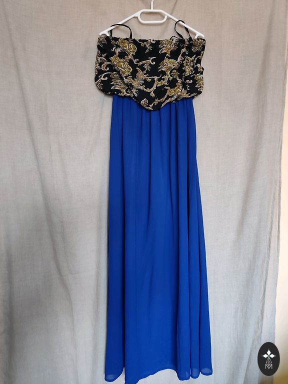 Length 90cm, middle 35cm. Navy blue color. Stretchy fabric. No size, but corresponds to a size 38.