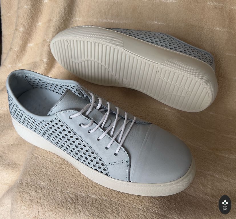 Очень мягкая кожа. Необходимо заменить шнурки. Внутренняя стелька 26,7 см.