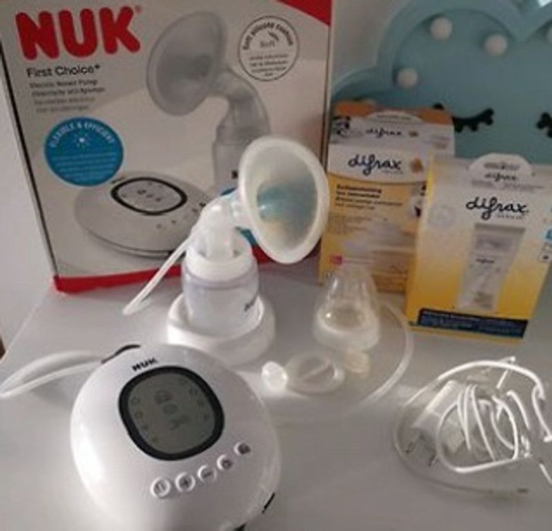 The bottle was used once, then sterilized. The pump does not have a charger, but a phone charger fits. Shipping is included in the price.