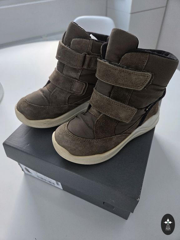 Ecco ziemas zābaciņi 30.izmērs ļoti labā stāvoklī, tikai nedaudz apbružāta āda. Zoles nav nodilušas iekšpuse bez nodiluma. Goretex.