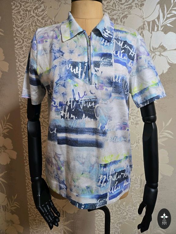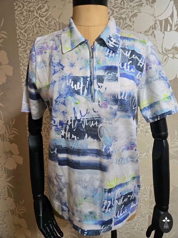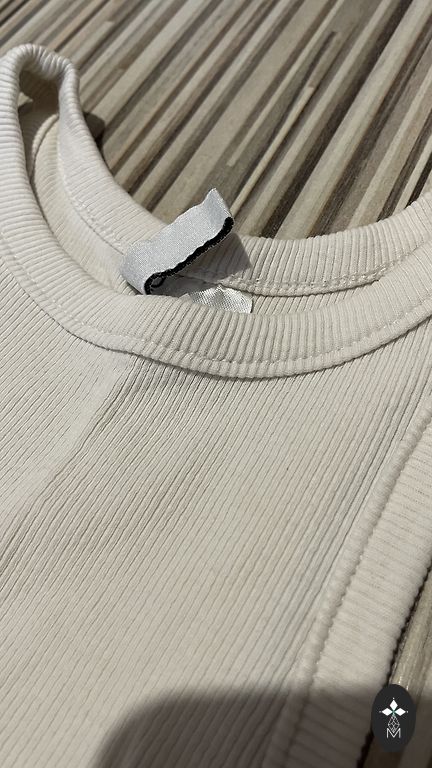 Krāsa - krēmkrāsas. Garums 60 cm. Krūtīs: 90 cm. T-krekls stiepjas. Sastāvā: 6% elastāna.