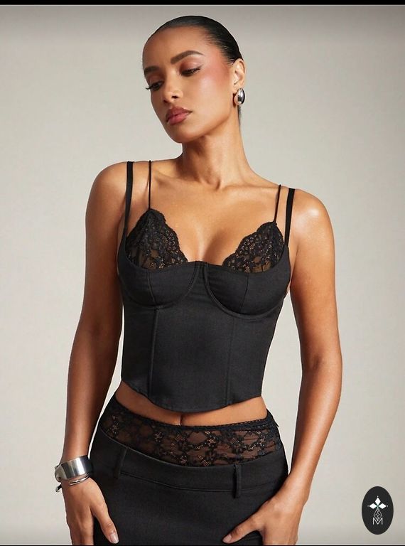Melna satīna korsete no Latvijas zīmola LA DIVA corset, modelis ALMA. Jauna, nepiemērota pēc izmēra. Izmērs - S/M. Krūšu apkārtmērs - 90 сm, vidukļa apkārtmērs - 68 сm, gurnu apkārtmērs - 94 cm. Kaklarota - dāvana.