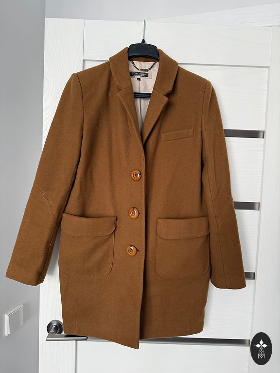 Offering a Stefanel wool trapeze coat with a high collar, length - knee-length. Suitable for S-M size.