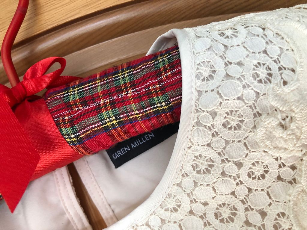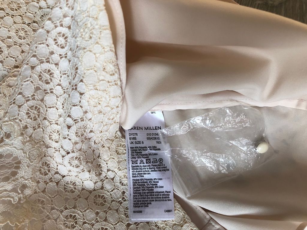 Keletą kartų užsidėtas dramblio kaulo spalvos Earth Circus Stardust komplektas iš trumpo viršutinio drabužio su ilgomis platėjančiomis rankovėmis, kurios užsiriša nugaroje, ir maxi sijono su giliu iškirpimu. Medžiaga labai švelni ir maloni odai, taip pat tampri. Viršutinio drabužio ilgis 36 cm, sijono ilgis 103 cm. Įsigyta Balio saloje.