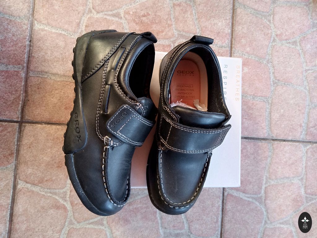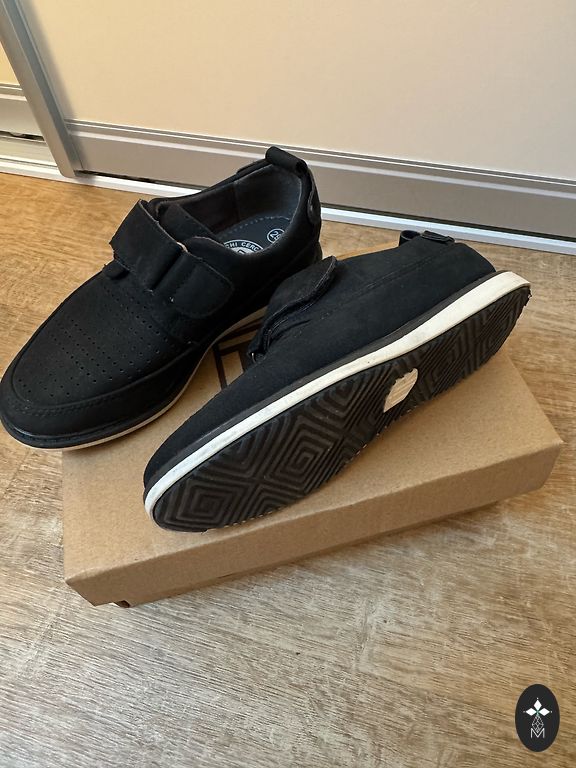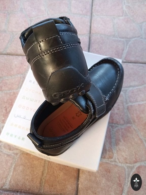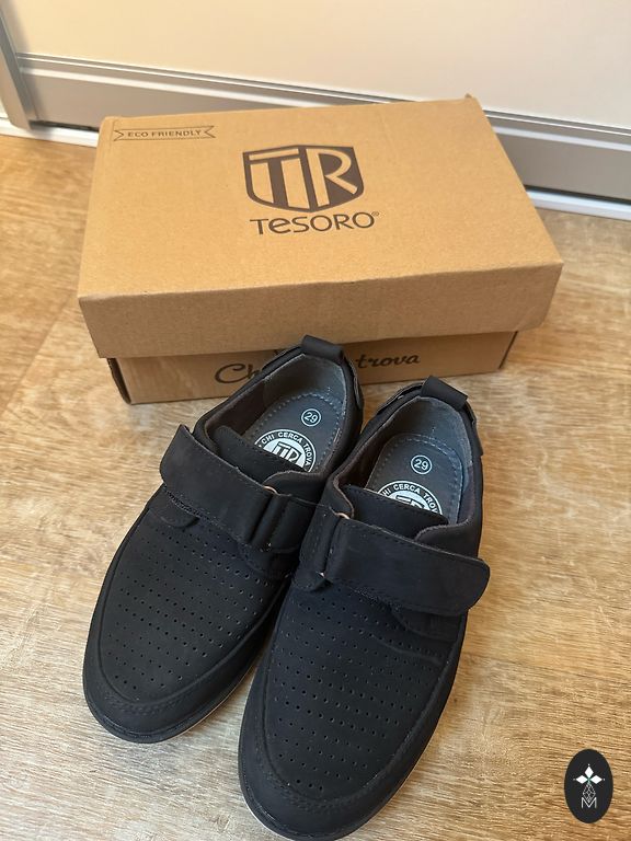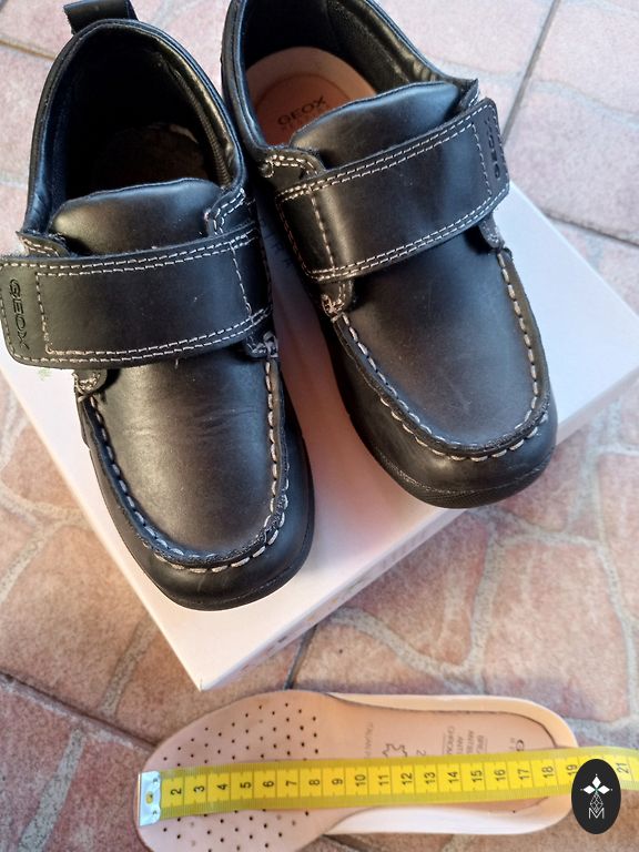 Mīkstas dabīgās ādas kurpes ar stiprinātu purngalu. Var vilkt lietū. Iekšzolīte no malas līdz malai 20 cm.
