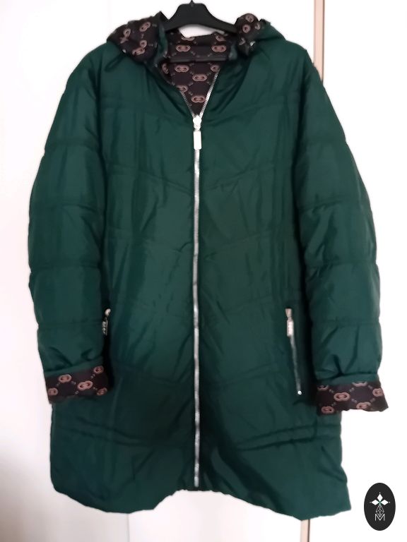New jacket for autumn and spring, suitable for size 46-48, color chocolate. Length 88 cm.