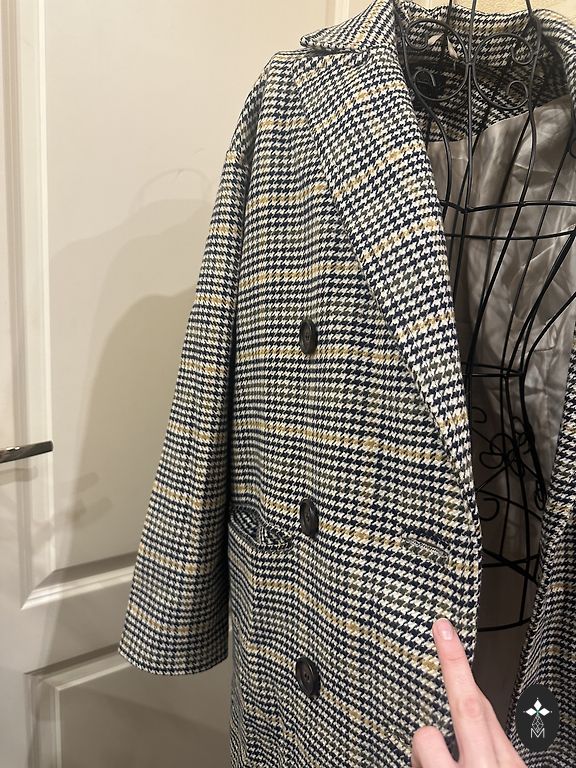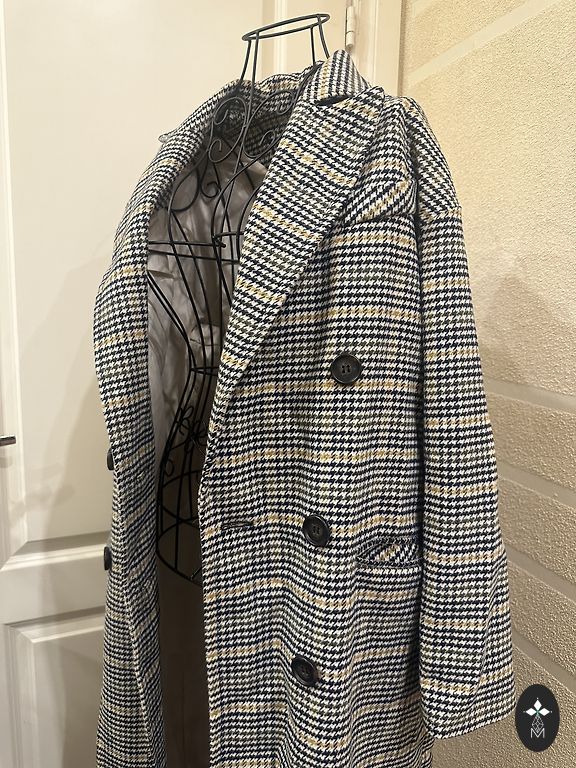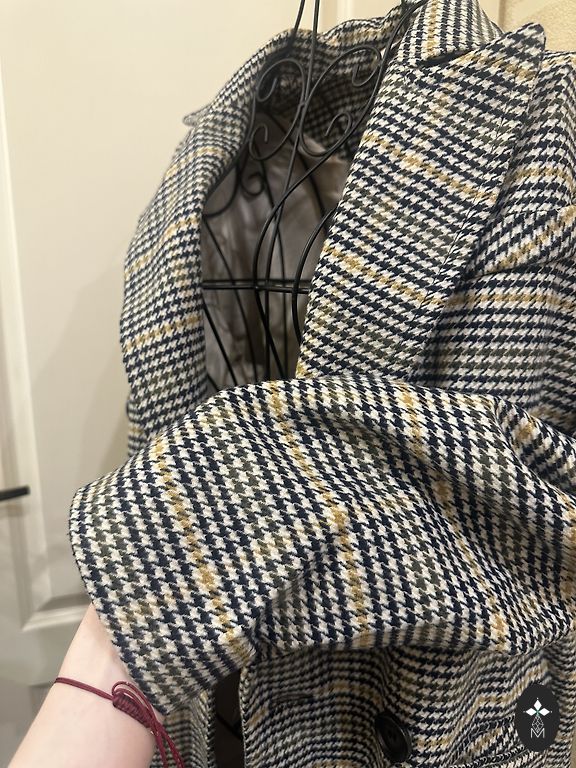 Rūtots , skaists mētelis . Iekšā ir odere , ar šķēlumu .