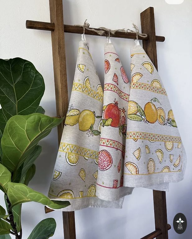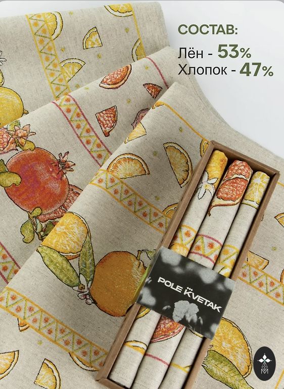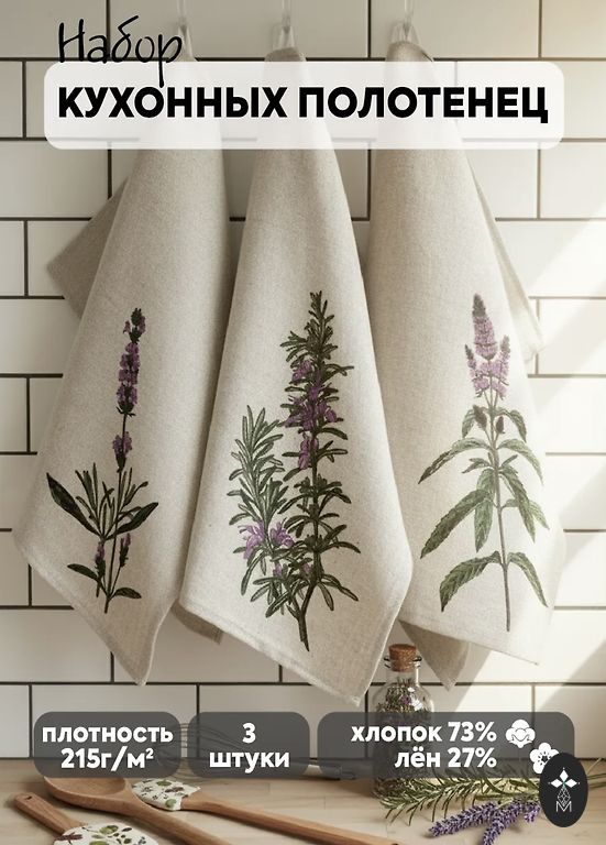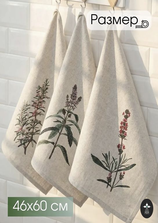 Комплект кухонных полотенец из льна и хлопка, 3 шт. Состав: 28% лен, 72% хлопок. Размеры: 46x60 см.