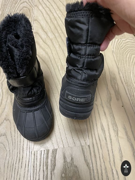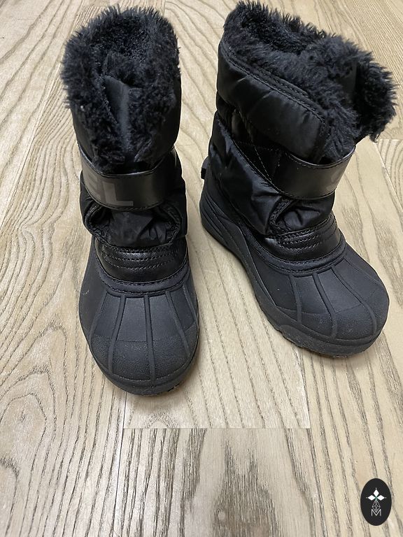 Использовались полсезона. Нет никаких дефектов, единственное, что внутри немного порвано и прижато. Это видно на фотографиях, но это не влияет на тепло и водонепроницаемость. Удобно надевать на липучках. Подойдут также для более широкой стопы. 17см/28 размер.