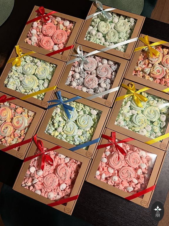 Предлагаю цветные безе, можно смешивать разные цвета. Пакет ~120г.