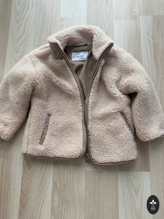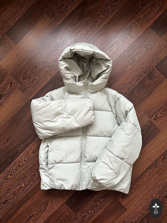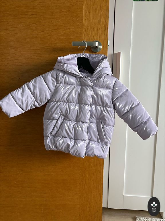 Pārejas sezonas jaka, pagarināta ar kapuci, ar rāvējslēdzēju un pogām, augsts apkakle. Krūšu apkārtmērs 50×2. Izstrādājuma garums 62 cm. Piedurkne no kakla-pleca 13 cm, no pleca līdz manžetei - 56 cm, manžete uz gumijas. Piegāde no pircēja, visi jautājumi personīgi.