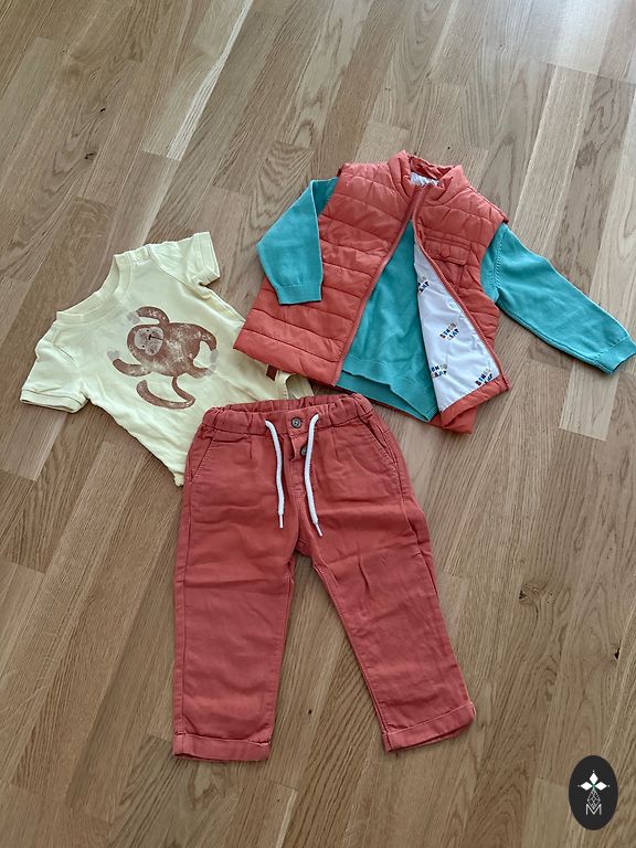 Divi džemperi ar biksēm Next 9-12 mēn., 80 cm, tumšākām biksēm mazliet izbalējusi krāsa, citādi bez defektiem.