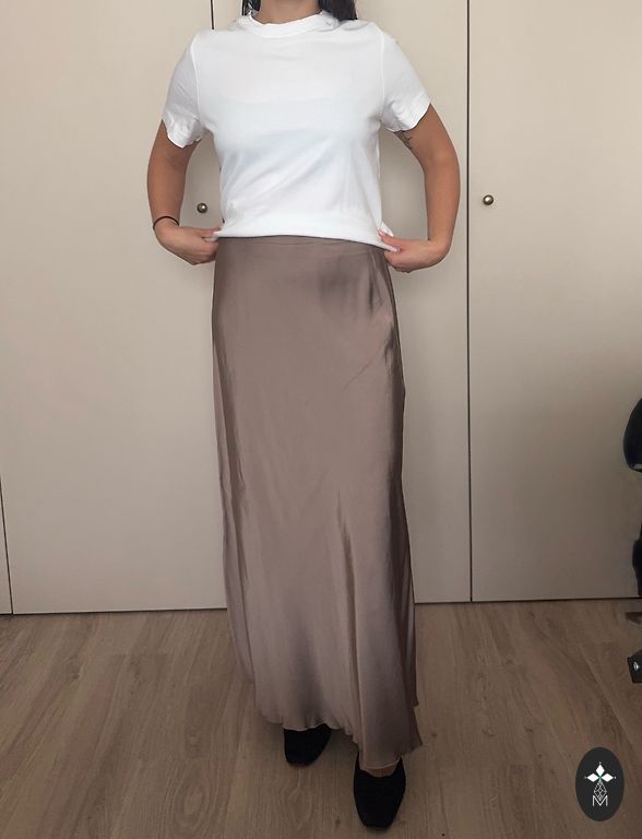 Skirt length 102 cm, waist without stretch 45 cm but fits up to 55+ cm