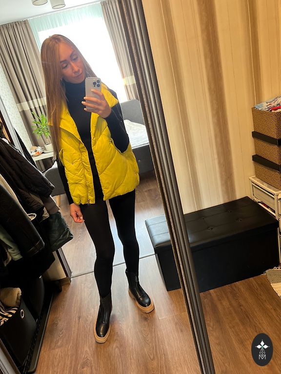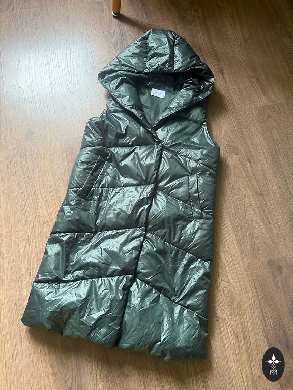 Pavaizduotas xs dydis. Paskutinėje nuotraukoje matyti nedideli lopai priekyje, tikriausiai galima skalbti - nebandžiau.