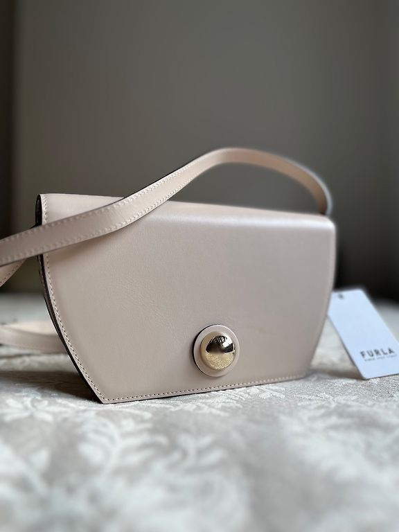 Кожаная сумка, оригинальная, бежевого/песочного цвета, легкая, два больших отделения и несколько маленьких, регулируемый плечевой ремень 110-136 см, размеры 34x25x15cxш, мешок для хранения