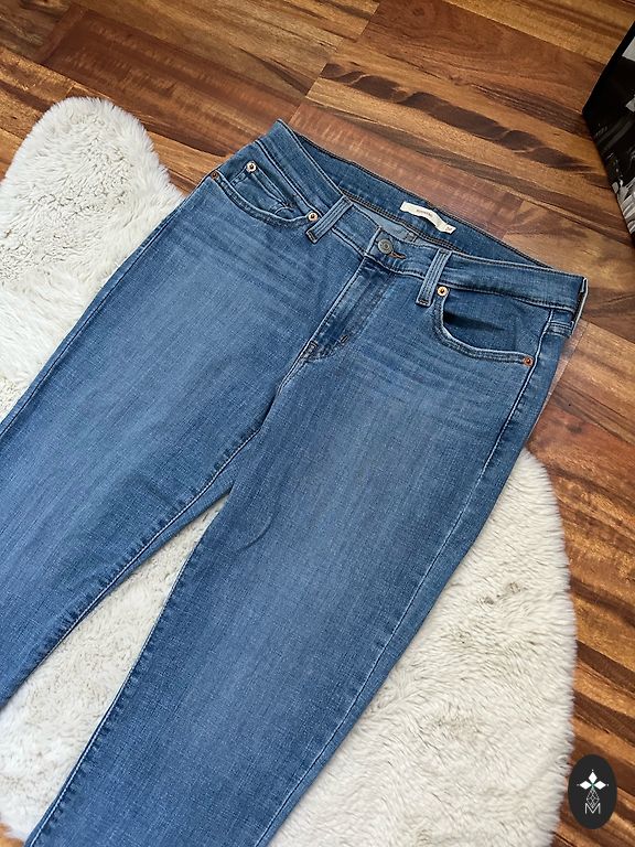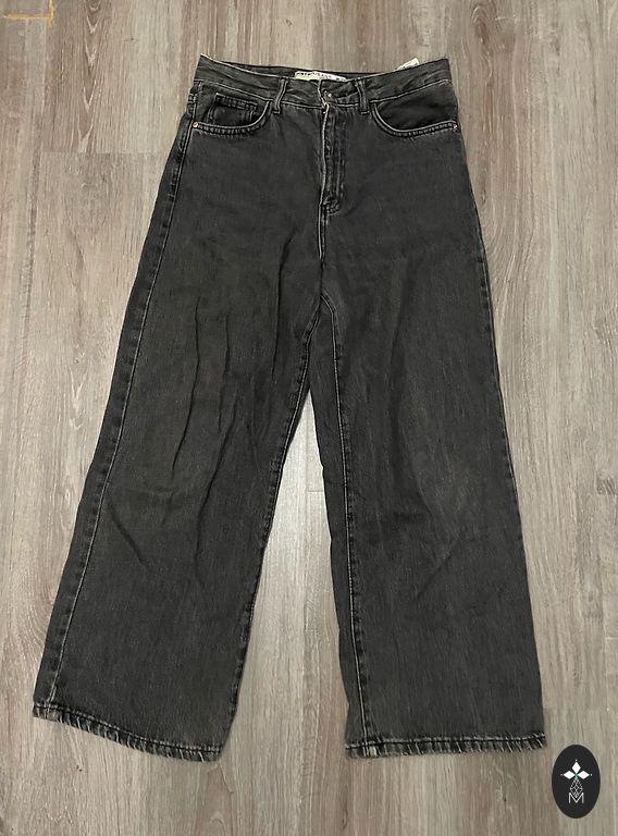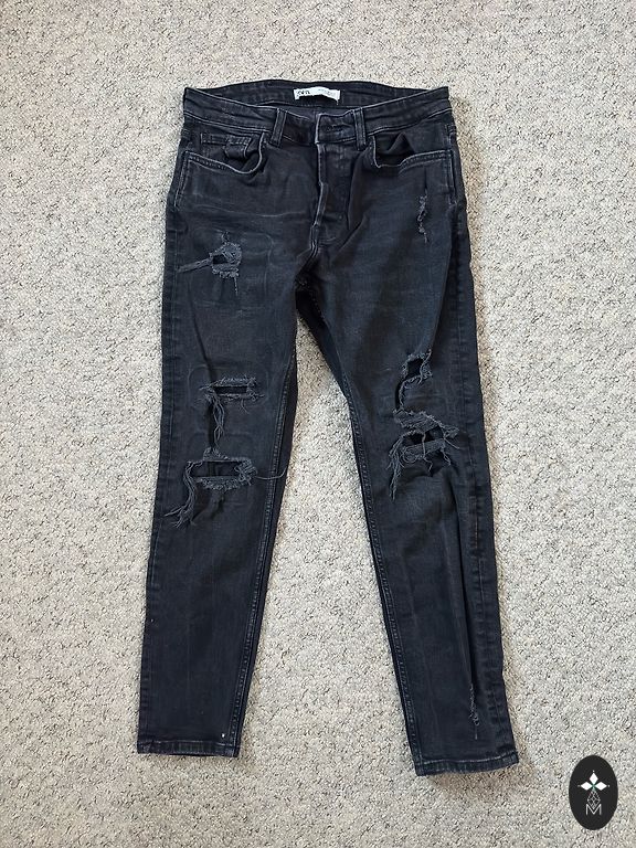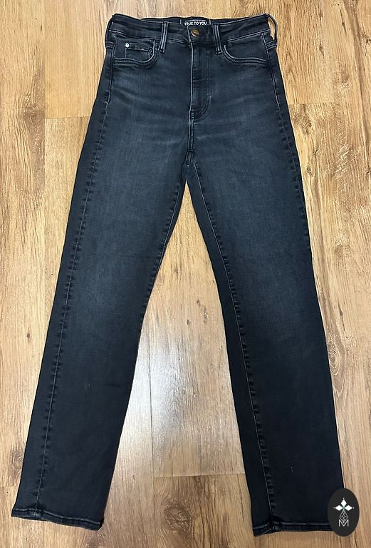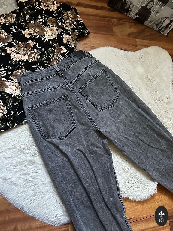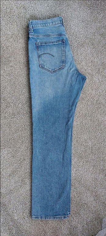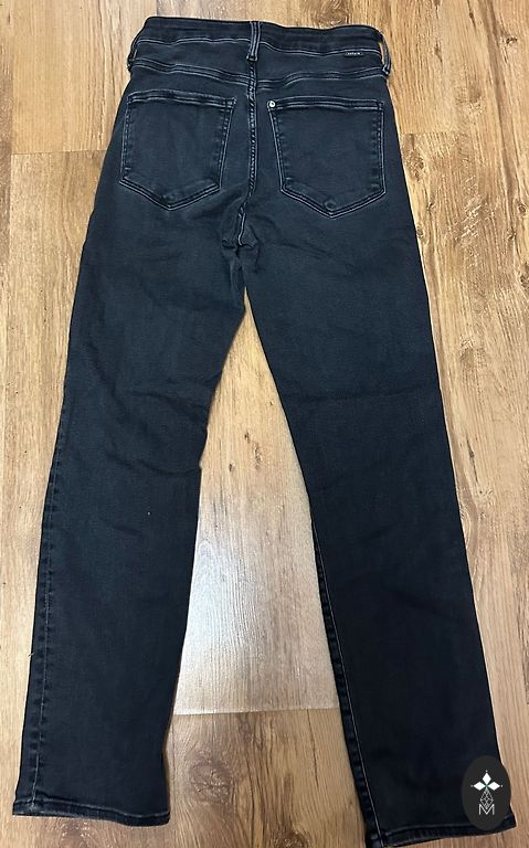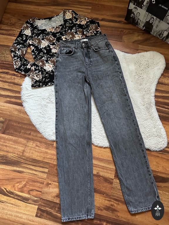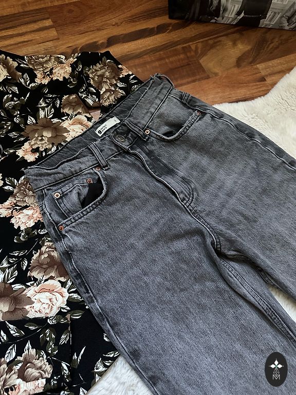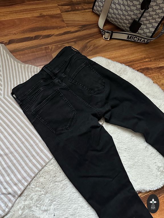 Garums 102 cm, iekšstara 75 cm, jostasvietā 46 cm. Zema jostasvieta. Elastīgas