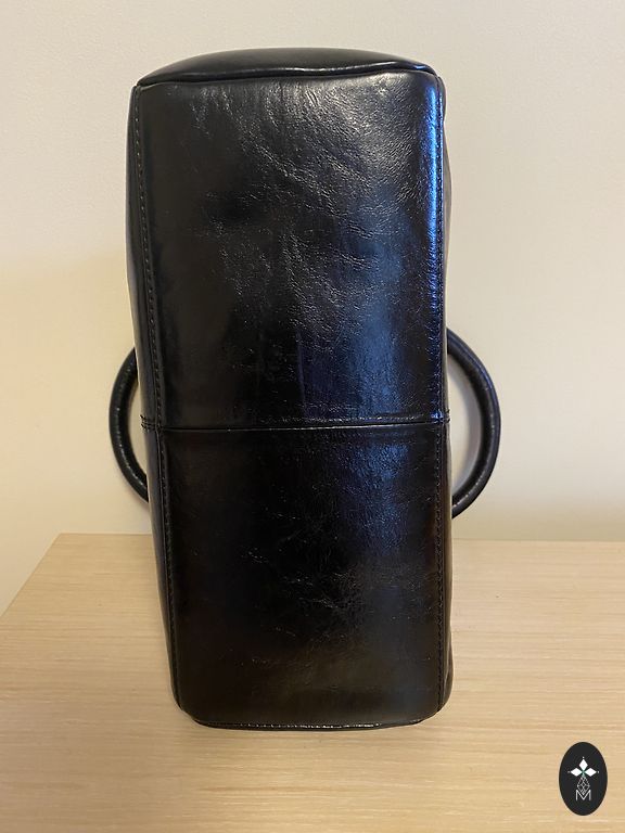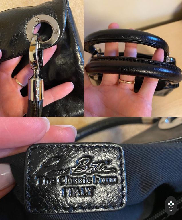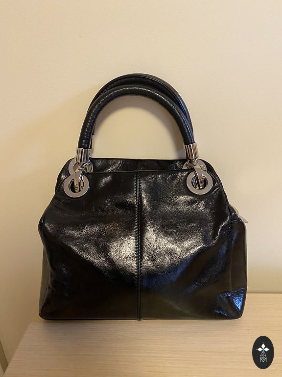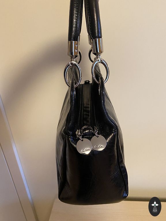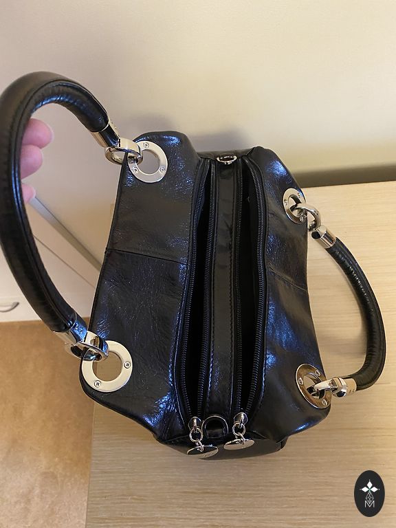 Somiņa tumši zilā krāsā. Aiztaisās ar magnētpogu. Iekšā ir kabata ar rāvējslēdzi un viena maziņa kabatiņa pretējā pusē bez rāvējslēdža. Vēl viena kabatiņa ir ārpusē, zem spiedpogas un viena kabatiņa priekspusē (foto var redzēt). Nēsāta pavisam maz. Iekšā tīra. Vienīgais trūkums, pazuduši abi “štruntiņi” lai attaisītu ērtāk kabatiņai rāvējslēdzi. Bet tā, domāju, ka nav liela skāde, var izdomāt kaut ko. Ir garā lence, kura regulējas.