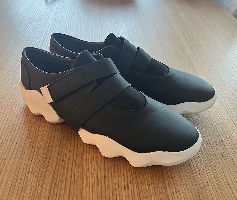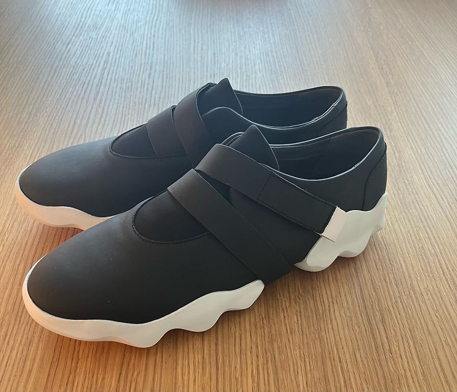 Leather + fabric. Just right. Looks very beautiful on the leg. Inner sole 26 cm.