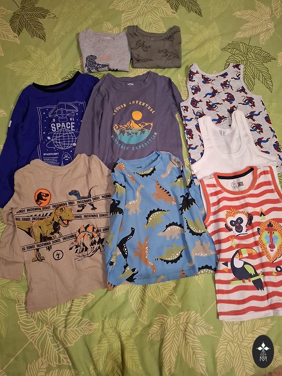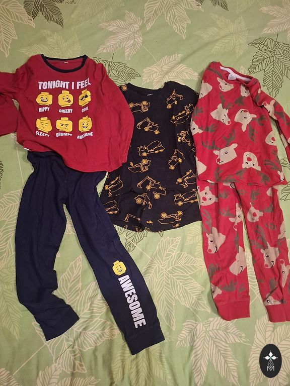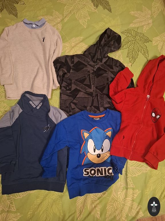 Kieti komplektai, dydis 92, bet raudonas komplektas yra šiek tiek mažesnis (3-ioji nuotrauka, kelnių dydis, megztinis taip pat šiek tiek mažesnis). Vienintelis trūkumas yra tai, kad kelnėse yra mažos skylutės, bet jos nėra tokios blogos, beveik nematomos.