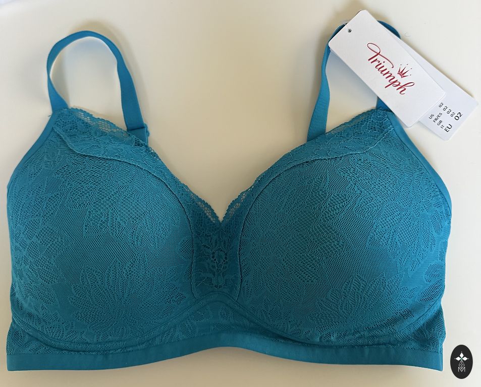 Lieliskie Triumph krūšturi- persiku un mierīgi zaļā tonī. Gaišajam nedaudz biezāks polsterējums, zaļais- viegls, plāns. Izcili tur formu, ja ir pareizais izmērs.