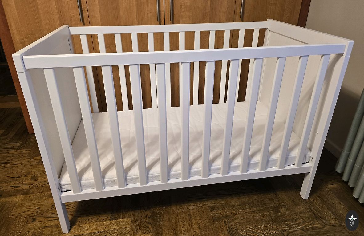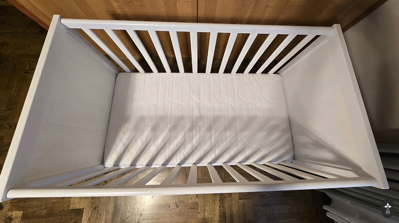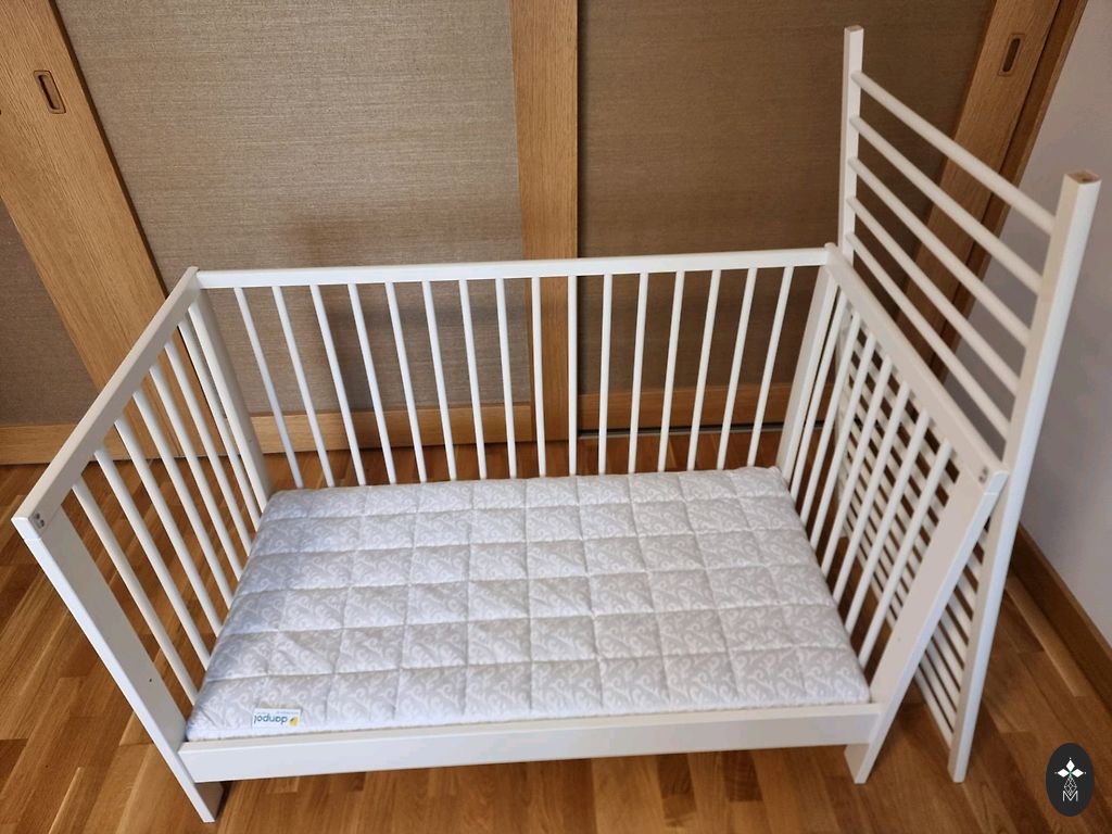 Lova buvo naudojama tik žaislams su meškiukais. Mūsų dukra miega su mumis 😃 (2,2 g) Iš tiesų, mes jos nenaudojome miegui, tik žaidimams. Yra keletas žaislų kojų paliktų žymių ir pan. Čiužinys yra nesugadintas, ant jo visada buvo drėgmės apsauginis sluoksnis (taip pat siūlome parduoti 2 tokius sluoksnius), jei jus tai domina. Čiužinys buvo įsigytas iš erti.lv, kietas, skirtas kūdikiams. Yra Teikoje. Bus išardytas, paimti reikia patiems.